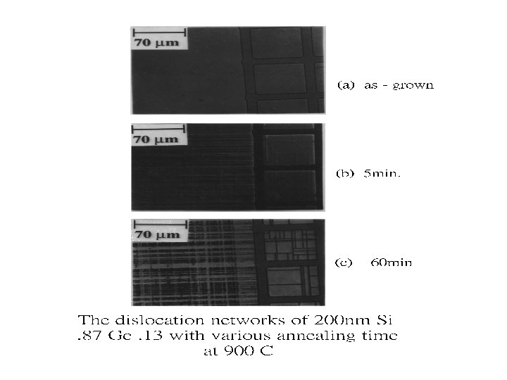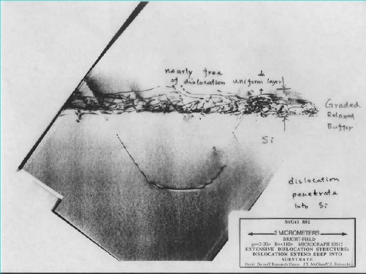 Misfit dislocation The thickness of Si. Ge growth >tc The film relaxs Misfit dislocation l This relaxation is catastrophic for Si. Ge HBT application