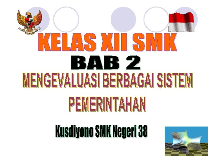 Waktu : 4 x 45 Menit Standar Kompetensi : Mengevaluasi berbagai sistem pemerintahan Kompetensi Dasar : 2. 2. Menganalisis pelaksanaan sistem pemerintahan negara Indonesia. 2. 3. Membandingkan pelaksanaan sistem pemerintahan yang berlaku di Indonesia dengan negara lain.