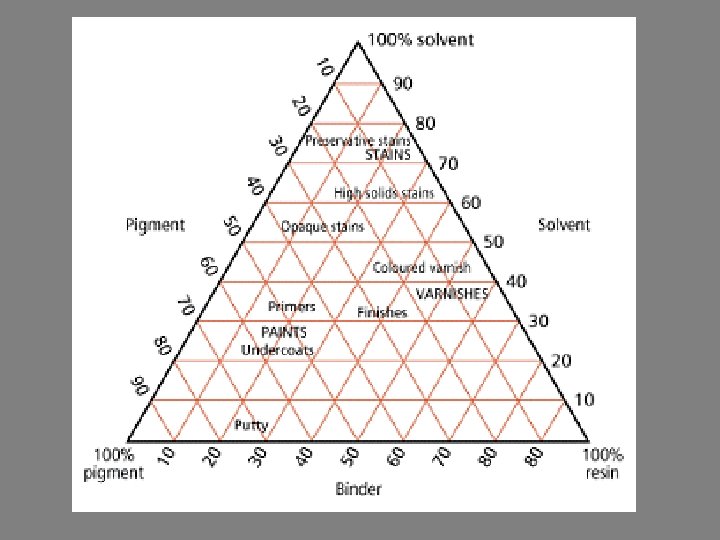 Paints and Coatings • What is paint? • Paints are made up of four components: pigment, binder, solvent/liquid carrier, and additives. • Varnishes, which form transparent or semitransparent films, are made up of the last three components, with colored varnishes containing small amounts of pigment.