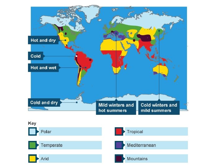WALT: What is Weather? WILFS. L 4 – Describe why we have different weather. L 5 – Explain the rain. L 6 – Compare the different types of rain! KEY WORDS Weather describes the day-to-day conditions of the atmosphere. Weather can change quickly - one day it can be dry and sunny and the next day it may rain. Climate describes average weather conditions over longer periods and over large areas. Temperate describes the British weather. Not too hot nor too cold.