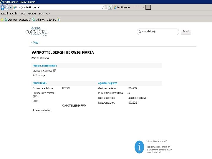 Mijn Certificaat: Beperkte levensduur (3 jaar) http: //www. healthpages. be/ Ø e. Health: drie maanden vooraf waarschuwing (indien aangevraagd met eigen mail (niet praktijkcoach) Ø EMD: checkt + geeft waarschuwing vanaf 60 dagen voor de vervaldatum Øe. Health. Box provider