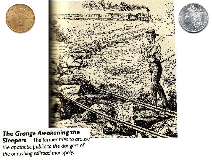 The Silver Issue Ø “Crime of ’ 73” demonetization of silver (govt. stopped coining silver). Ø Bland-Allison Act (1878) limited silver coinage to $2 -$4 mil. per mo. (based on the 16: 1 ratio of silver to gold). Ø Sherman Silver Purchase Act (1890) § The US Treasury must purchase $4. 5 mil. oz. of silver a month. § Govt. deposited most silver in the US Treasury rather than circulation. Farmers Demand the unlimited coinage of Silver!!