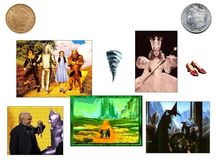 What Are the Metaphors? Ø Dorothy ? Ø Slippers ? Ø Kansas ? Ø Emerald City ? Ø Wicked Witch of the East ? Ø Oz ? Ø The Wizard ? Ø Munchkins ? Ø Wicked Witch of the West ? Ø Flying Monkeys ? Ø Tinman ? Ø Scarecrow ? Ø Cowardly Lion ? Ø Yellow Brick Road ?