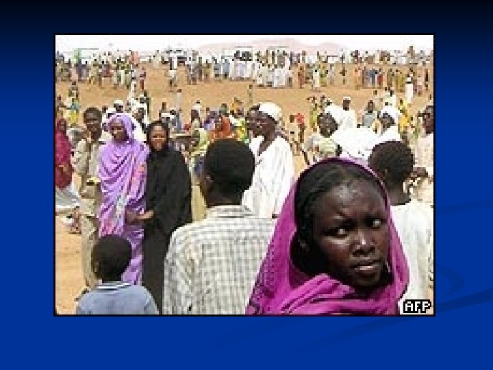 Darfur, Sudan Between 180, 000 - 460, 000 deaths over last two years (most from disease) n 5. 5 million refugees and internally displaced persons; 2. 7 million in refugee camps n Government-supported, Islamic Janjaweed militias responsible for killing Black Africans n Arms sales to Sudan from China, Russia, France, Iran, Saudi Arabia, Belarus, Poland, Lithuania n