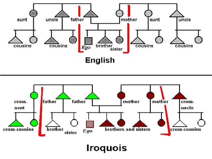 Kinship • Kinship terms are a universal feature of human language. Some systems are much richer than others, but all make use of such factors as gender, age, generation, blood, and marriage in their organization • Very difficult to get an exhaustive description • As social conditions change, we can expect kinship systems to change to reflect the new conditions (Wardhaugh 228)