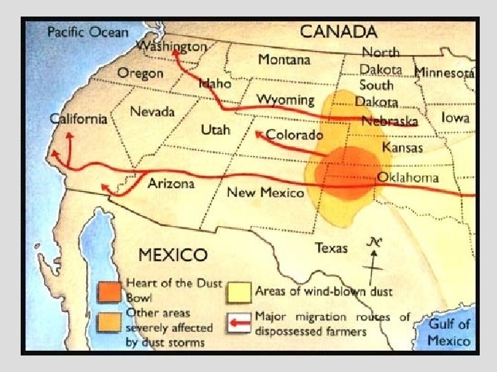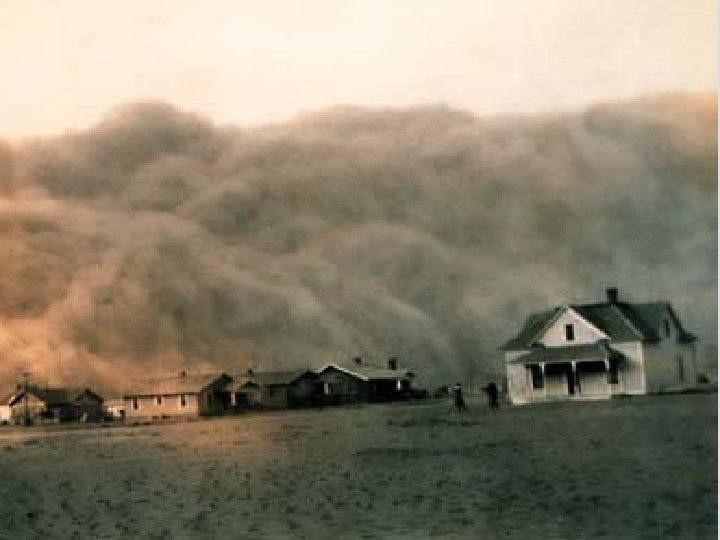 19 35 The Dust Bowl • Drought and overfarming dry up land • Huge dust storms spread across the US
