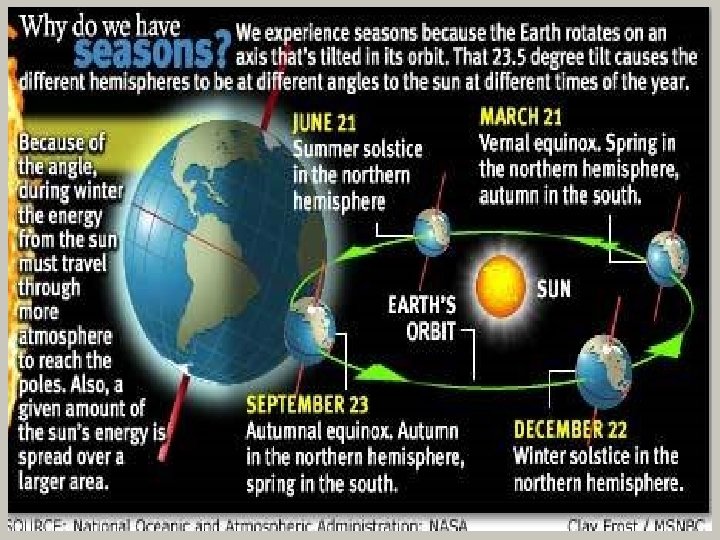 Sun and Seasons • The Earth’s movement around the Sun is called a revolution. • The Earth’s revolution and its tilted axis are what cause the changing of the seasons. http: //www. brainpop. com/science/ weather/seasons/
