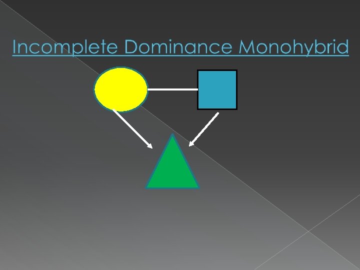 Incomplete Dominance Monohybrid Parents are both heterozygous pink. Rr P 1 ______ Offspring Genotype X R Rr r 1 RR : 2 Rr : 1 rr Offspring Phenotype 1 Red : 2 Pink : 1 White R Rr rr