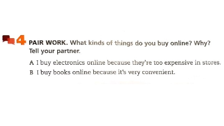 Think, then Ask ● ● What do you think about online shopping? Do you shop online often? What apps or websites do you use? What are some problems with online shopping?
