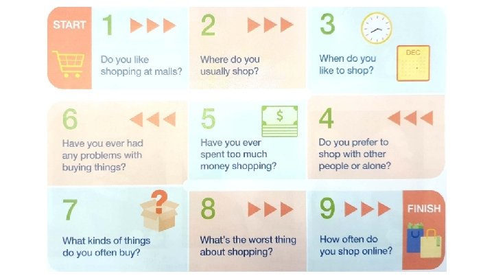 Review: Ask and Answer ● What’s your favorite kind of store? Why? ● What are some items that you think are overpriced? ● Where is an inexpensive place to eat near here? ● What’s something that’s really outdated these days? ● What’s something that’s really trendy these days?