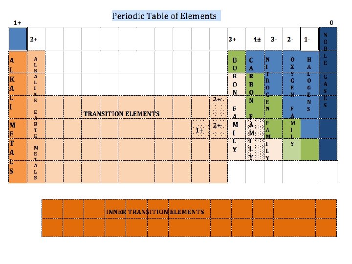 As you come in shade in the blank + periodic table like below (use diff. colors if needed) Metals – Green Nonmetals – Orange Metalloids - Purple