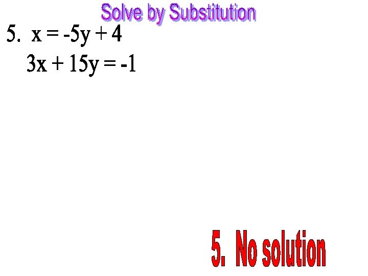 Type 2: No Solutions A system of linear equations having no solutions is described as being inconsistent. y The system has no solution, the x lines are parallel Remember, parallel lines have the same slope