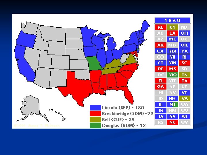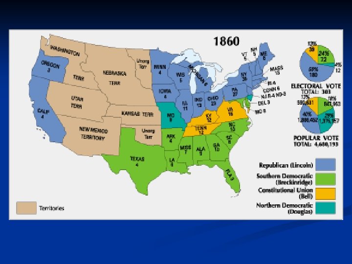 The 1860 Election n www. 270 towin. com n Democrats Split, Run Northern and Southern Candidate n Republicans Run Lincoln