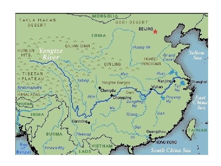 Rivers of China • The rivers of China were known as China’s Great Sorrow, because every year they would flood and the towns along them would have to be rebuilt.