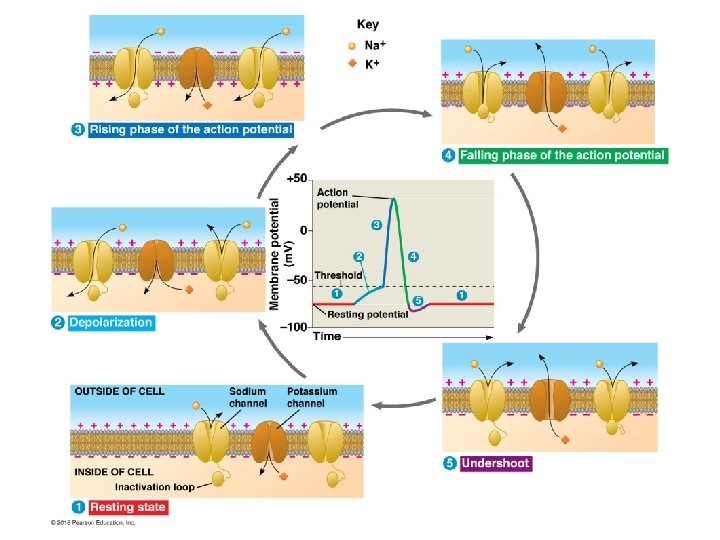 Action potentials (nerve impulses) are the signals conducted by axons Resting potential: membrane potential at rest; polarized Na+ outside, K+ inside cell Maintained by sodium-potassium pumps Voltage-gated Na+ channel = CLOSED Nerve impulse: stimulus causes a change in membrane potential Action potential: neuron membrane depolarizes All-or-nothing response Na+ channels open Na+ enters cell K+ channels open K+ leaves cell