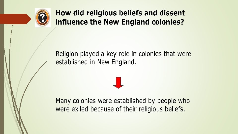 Warm Up Question: What was the main reason why the New England colonies formed?