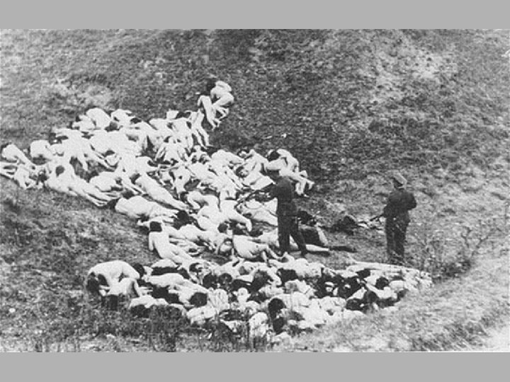 Phase 1 = Shooting • Jews were rounded up and told they were to be relocated • They were taken to the woods and were shot one by one • their bodies were buried in mass graves • What would you think of; knowing death was waiting for you at the end of the line?