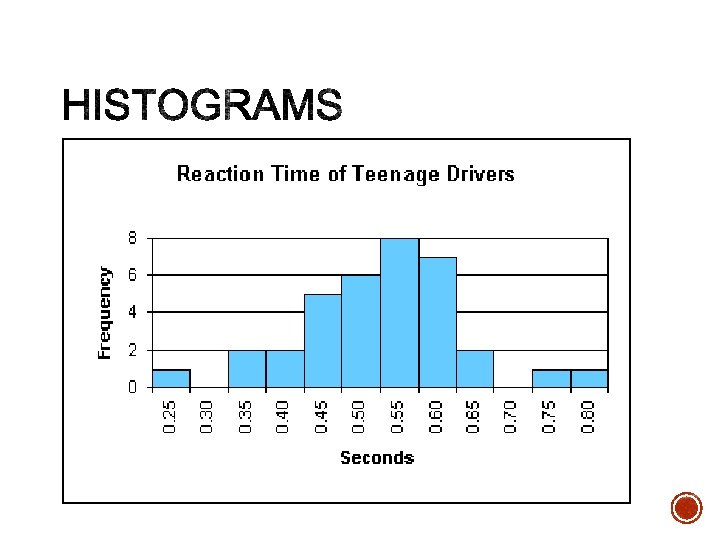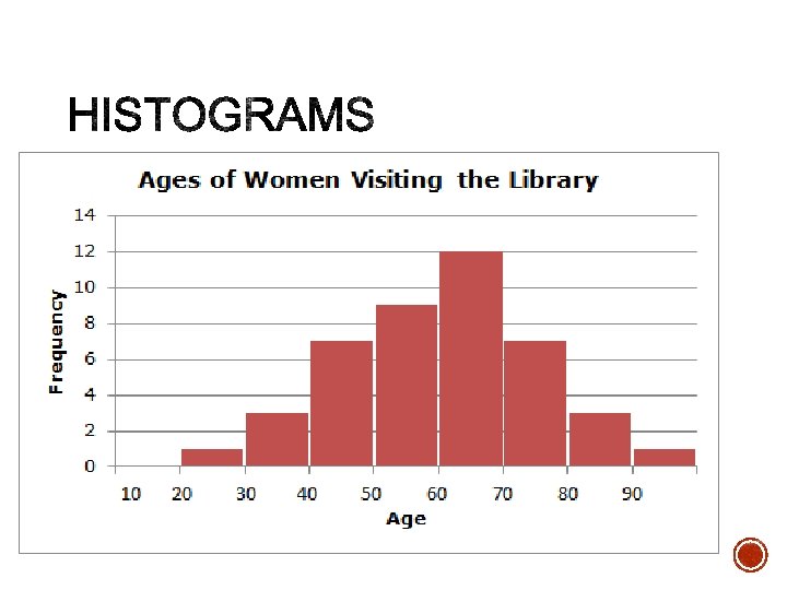 § special line/bar graphs where y-axis represents the frequency of a measure (how common something is) § Frequency can be represented as number, fraction, percentage, proportion § Usually dependent variable values are put on the y-axis, but here the frequency of values (or a range of values) is placed on the y-axis. [“DRY MIX “does NOT apply] § Typically there is no space between the bars § Examples: IQ chart, height of people in population, grades on an exam, lifespan, “bell curve”