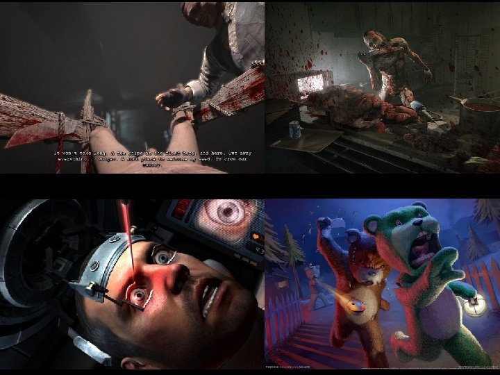 Images • • • • • http: //joyreactor. com/tag/violence http: //fivebeforechaos. com/2008/07/01/sex-violence-videogames/ https: //www. doomworld. com/vb/doom-general/42866 -post-your-doom-picture-post-in-part-2 -instead/419/ http: //www. gamespot. com/articles/new-doom-for-xbox-one-ps 4 -pc-won-t-be-easy-bethesd/1100 -6428235/ http: //www. playnswap. com/blog/top-8 -influential-arcade-games-time/ http: //au. ign. com/wikis/mortal-kombat-x/Fatalities http: //outlast. wikia. com/wiki/Outlast: _Whistleblower http: //rockman 1. tumblr. com/post/6965598706/fuckyeahdead-space-the-eye-poke-machine-i http: //glitchcat. com/505 -games-announces-naughty-bear-panic-in-paradise/ http: //www. nydailynews. com/life-style/health/role-video-game-addiction-played-columbine-shootings-article-1. 361104 http: //abcnews. go. com/Blotter/prosecutors-norway-killer-anders-breivik-played-world-warcraft/story? id=16511213 http: //guardianlv. com/2013/09/grand-theft-auto-drives-8 -year-old-to-murder-his-grandmother/ http: //www. dailymail. co. uk/news/article-2516427/Sandy-Hook-shooter-Adam-Lanza-83 k-online-kills-massacre. html http: //news. bbc. co. uk/2/hi/americas/7826663. stm http: //www. telegraph. co. uk/news/worldnews/northamerica/usa/10314585/Aaron-Alexis-Washington-navy-yard-gunman-obsessedwith-violent-video-games. html http: //www. mirror. co. uk/news/world-news/washington-navy-yard-shooting-suspect-2279366 http: //blog. lhyeung. net/2009/07/15/the-sims-3 -review/ https: //www. buzzfeed. com/jamiejones/worst-things-gamers-have-done-in-the-sims http: //www. independent. co. uk/life-style/gadgets-and-tech/gaming/gamers-confess-the-worst-things-theyve-done-on-the-sims 10144138. html http: //www. samhsa. gov/data/sites/default/files/NSDUHresults. PDFWHTML 2013/Web/NSDUHresults 2013. pdf