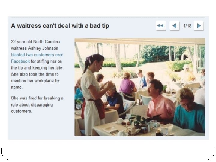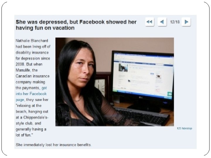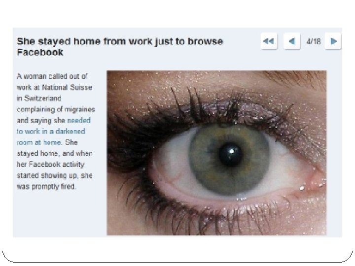 True Facebook Stories The following slides depict real situations in which misuses of Facebook led to unwanted situations