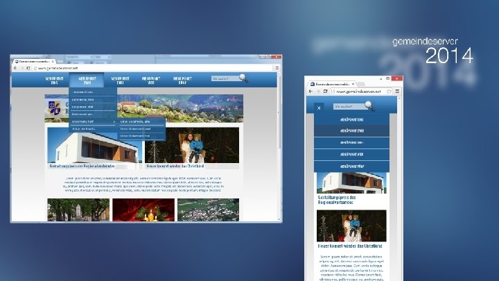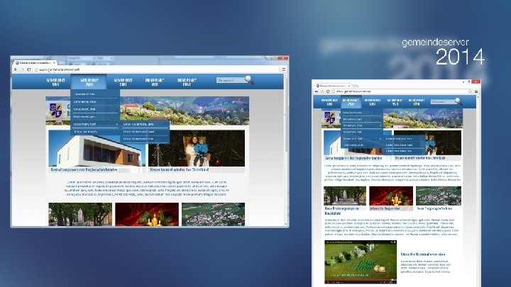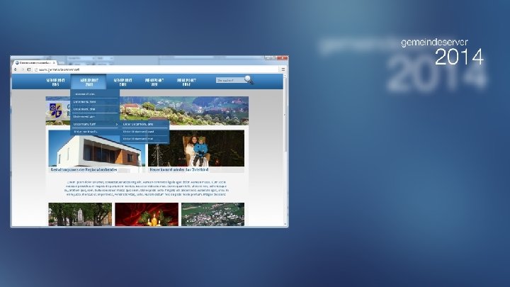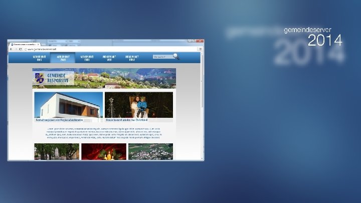 Inhalte Präsentation der Gemeindeamt & Service Leben & Wohnen Freizeit & Kultur Zusammenfassen Wirtschaft & Gewerbe der Hauptmenüpunkte