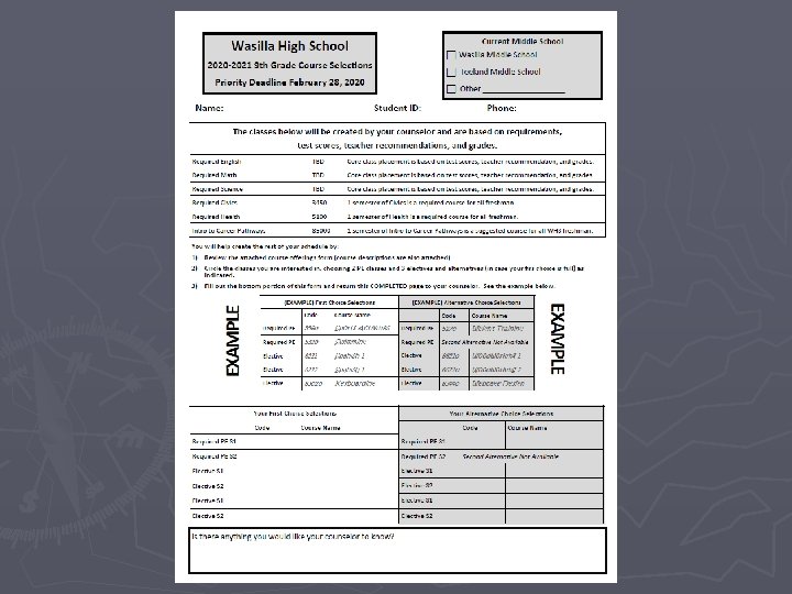 Wasilla High School Class of 2024 Scheduling for 2020 -2021 Freshman Year