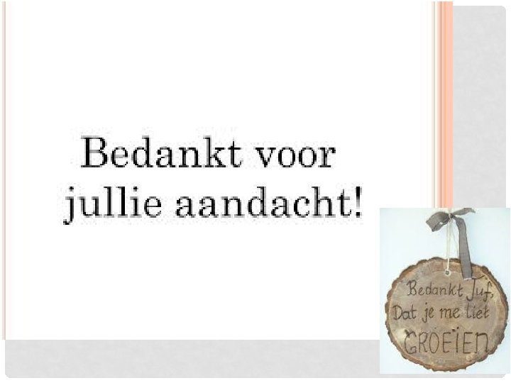 WAT IK VAN JULLIE VRAAG… • 10 minuten aandacht • Als een stakeholder: Ja of Nee? • Als een ‘critical friend’ • Evaluatie achteraf invullen • WAT je krijgt • Inspiratie om een goede docent te zijn