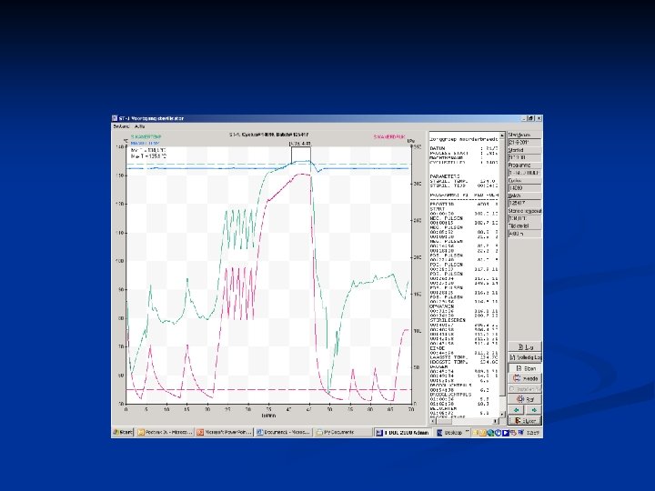 Uit de validatie blijkt welke parameters indicatief zijn voor het correct verlopen van het productieproces, of bijvoorbeeld een deelproces n Per proces parameters bepalen en vergelijken met validatiegegevens n Parameters geven de mogelijkheid tot trendanalyse n