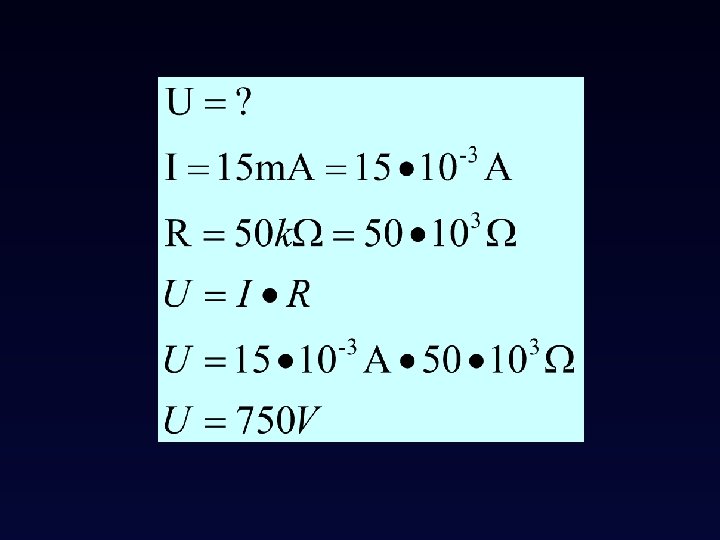 REKENEN MET ELEKTRICITEIT Wet van Ohm Een weerstand van 4. 700 Ω is aangesloten op een spanning van 42 Volt. a) Teken het schema b) Bereken de stroom door de weerstand A) 8, 9 m. A B) 9 A C) 112 A D) 197 A