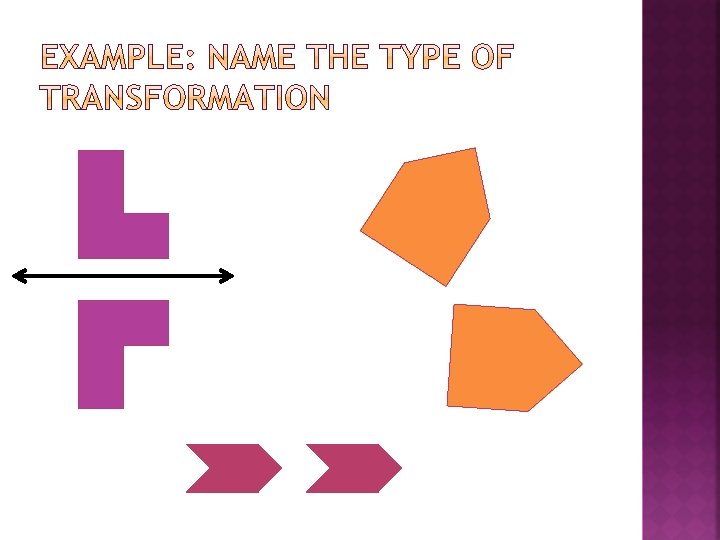 Transformations: when you move or change a geometric figure in some way to produce a new figure. Image is what the new figure is called. Congruence Transformations: changing the position of a figure without changing its size or shape. There are 3 types of transformations. Translation: is when we move every point on the figure, the same distance and direction. Reflection: is when we use a line of reflection to create a mirror image of the original figure. Rotation: Turns a figure about a fixed point called the center of rotation