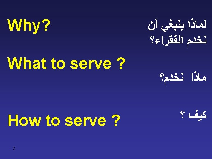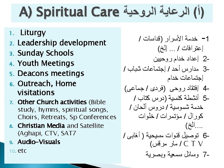 In Early Church ﻓﻲ ﺍﻟﻜﻨﻴﺴﺔ ﺍﻷﻮﻟﻲ "So the twelve summoned the congregation of the disciples and said, it is not desirable for us to neglect the word of God in order to serve tables. Therefore, brethren, select from among you seven men of good reputation, full of the Spirit and of wisdom, whom we may put in charge of this task”. (Acts 6: 1 -8) ﻓﺎﻧﺑﻮﺍ ﺃﻫﺎ ﺍﻹﺧ ﺳﺒ ﺟﺎ ﻧﻡ ﺷﻬﻮﺍ ﻡ ﻭﻣﻠﻳ ﻥ ﺍﻟﻭ ﺍﻟ ﻛ ، ﻻﺭﻱ ﺃ ﺗ ﺣ ﺍﻟﻠ ﻭﺧ ﺍ. . ﺍ ﺍﻻﺛﻨﺎ ﻫﻮ ﺍﻟﺘﻼﻣﻴ ﻭﻗﺎﻟﻮﺍ. . . ”. (8 -1: 6 “)ﺃﻊ. . . ﻓﻗﻴ ﻋﻠﻲ ﻫ ﺍﻟﺤﺎ “Did not God choose the poor of this world to be rich in faith and heirs of the kingdom … If, however, you are fulfilling the royal law according to the Scripture, "You shall love your neighbor as yourself, " you are doing well”. (James 2: 2 -9) “)ﻳﻊ. . . ﺍ ﻟﻮ ، ﺭﻳ ، ﻓﺈ ﻟﻮ ﺍﻟﻨﺎﻣﻮ ﺍﻟﻟﻮﻛ ﺍﻟﺍ. . . ﺃﻤﺎ ﺍﺧﺘﺎ ﺍﻟﻠ ﺭﺍ ﻫﺬﺍ ﺍﻟﻌﺎﻟ ﺃﻐﻨﻴﺎ ﻓﻲ ﺍﻹﻳﻤﺎ ﻭﻭﺭ ﺍﻟﻤﻛﻮ. . . ”. (9 - 2: 2 “ Contributing to the needs of the saints, practicing hospitality. ” (Romans 12: 13). (13: 12 ﺍﻓﻴ ﻋﻠﻲ ﺇﺍ ﺍﻟﺑﺎ“ )ﺭﻭ ، ”ﻛﻴ ﻓﻲ ﺍﺣﻳﺎﺟﺎ ﺍﻟﺩﻳﺴﻴ 14
