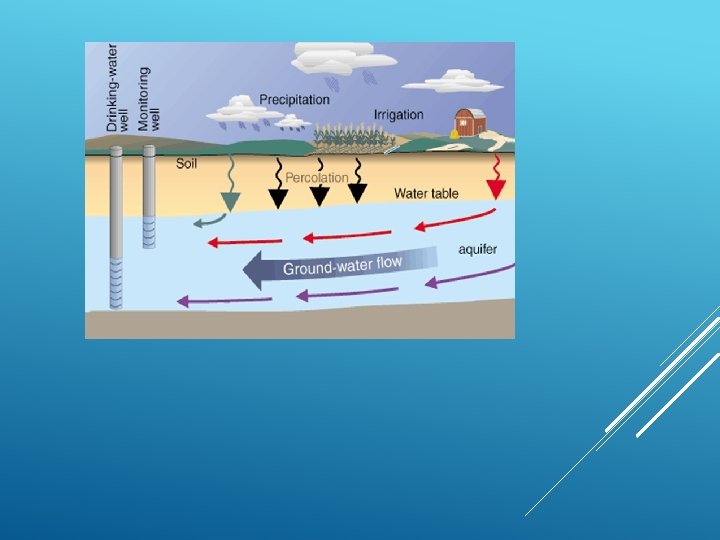 GROUNDbetween WATER POLLUTION Interactions groundwater and surface water are complex. However some of the polluting agents are as follows: Infectious Agents: bacteria and viruses often from animal wastes Oxygen Demanding Wastes: organic waste that needs oxygen often from animal waste, paper mills and food processing. Inorganic Chemicals: Acids and toxic chemicals often from runoff, industries and household leaners