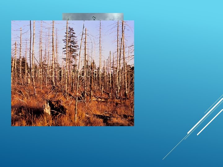 All of this happens partly because of direct contact between trees and acid rain, but it also happens when trees absorb soil that has come into contact with acid rain. The soil poisons the tree with toxic substances that the rain has deposited into it.