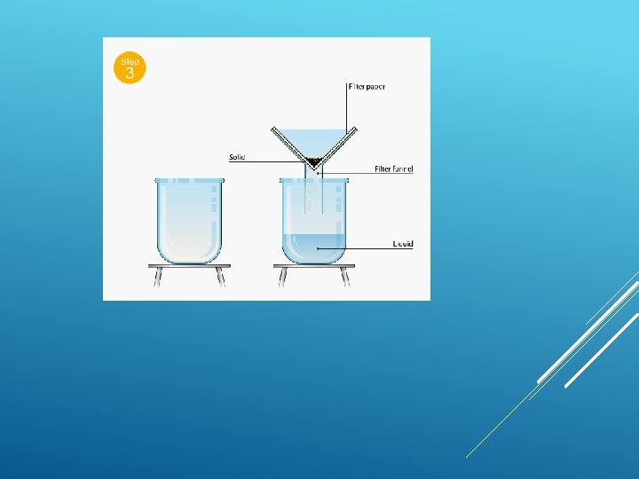 FILTRATION Filtration is good for separating an insoluble solid from a liquid. (An insoluble substance is one that does not dissolve). Sand, for example, can be separated from a mixture of sand water using filtration. That's because sand does not dissolve in water.