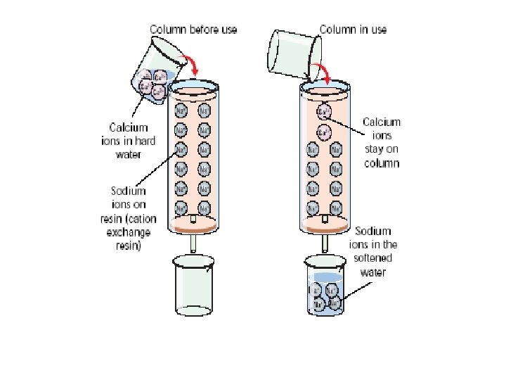 Removal of Hardness by Ion Exchange �Ca 2+ + Na 2 R → Ca. R + 2 Na+ The Hardness causing calcium and magnesium ions are removed from the water and replaced by sodium ions, which do not cause hardness
