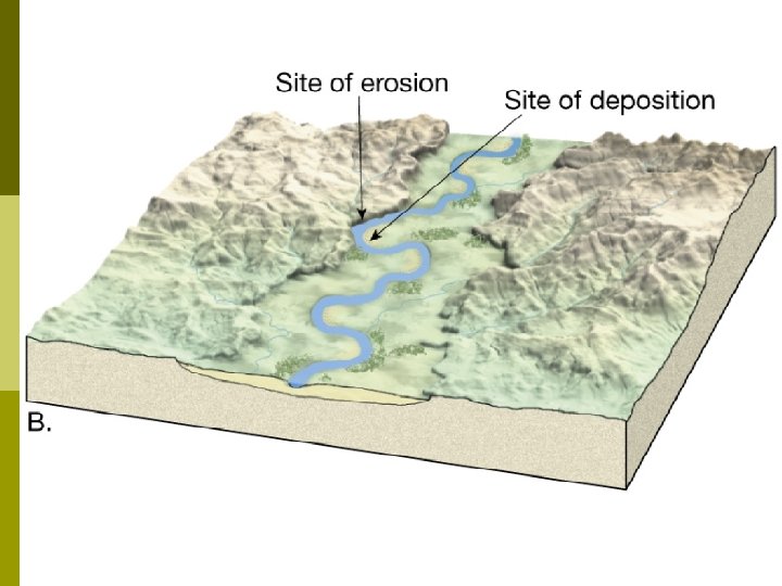 Running water p Begins as sheetflow p. Infiltration capacity depends on § Intensity and duration of rainfall § Prior wetted condition of the soil § Soil texture § Slope of the land § Nature of the vegetative cover p. Sheetflow develops into tiny channels called rills