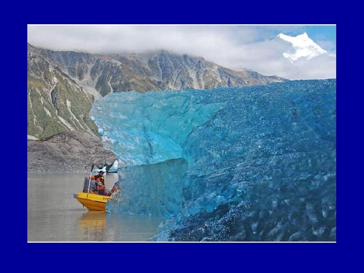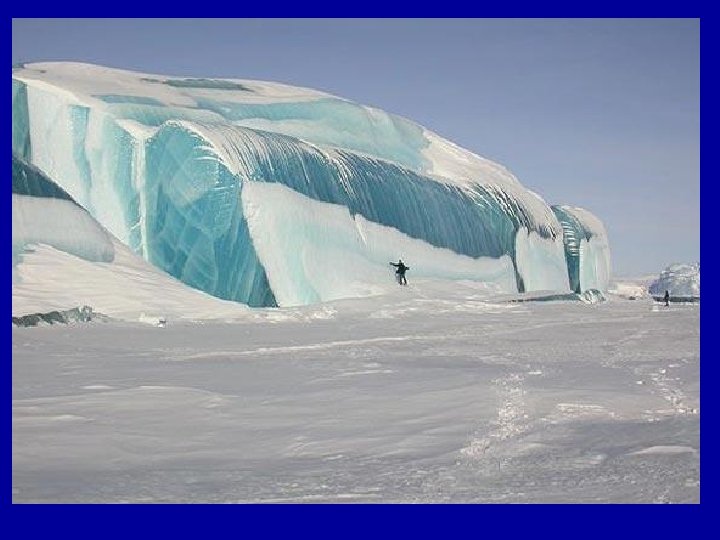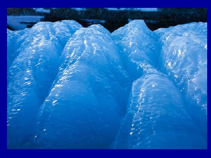 Blue Ice • • • Glacial ice is a different color than regular ice. It is so blue because the dense ice of the glacier absorbs every other color of the spectrum except blue--so blue is what we see! It's Not regular Frozen Water! Sometimes the glacial ice appears almost turquoise. Its crystalline structure strongly scatters blue light. The ice on a glacier has been there for a really long time and has been compacted down so that its structure is pretty different than the ice you normally see. Glacial ice is a lot different than the frozen water you get out of the freezer.