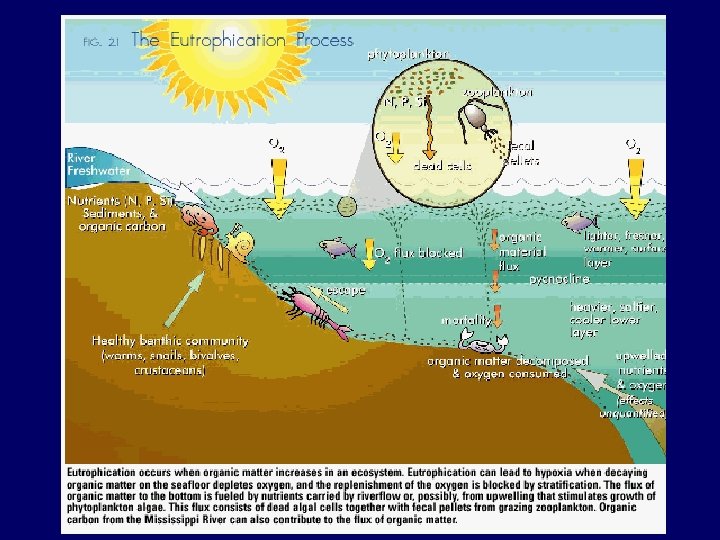 Gulf coast dead zone Fish and large animals swim away from poor water, small things die May be responsible for sharks coming inshore near TX, shark bites high this summer