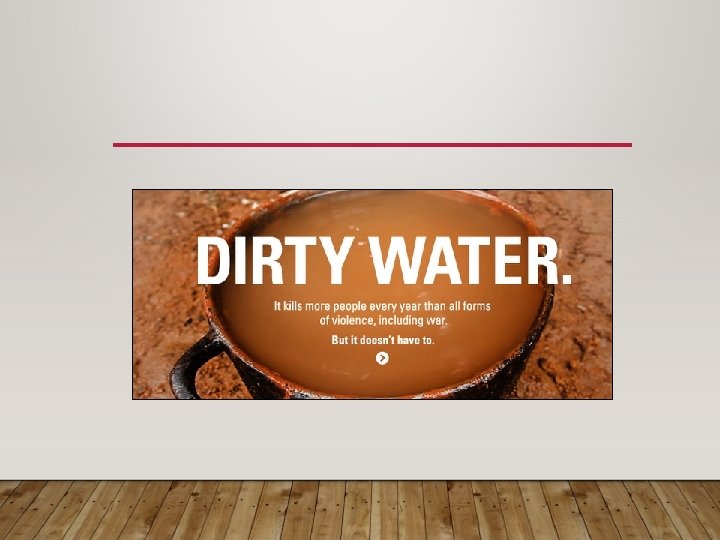 DISEASES ASSOCIATED WITH DIRTY WATER. • Cholera- Watery diarrhea that can lead to dehydration. • Guinea worm disease- Vomiting and dizziness. • Typhoid- Fever and rash. 1/5 people die.