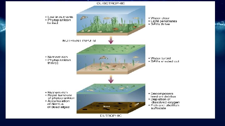 Eutrophication ○ Oligotrophic Eutrophic As nutrients are added from pollution, an oligotrophic condition rapidly becomes eutrophic.