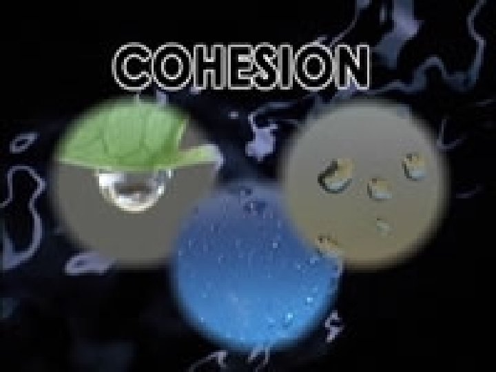 Cohesion • THIS IS WHY WATER DROPS LOOK A LITTLE FUNNY • What happens when you do a belly flop on the water? • You are breaking the cohesive bond between water!