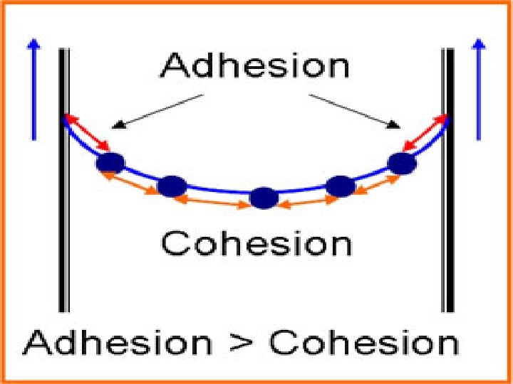 Adhesion • Water molecules have the ability to stick to different substances, sometimes they are absorbed, sometimes they are not.