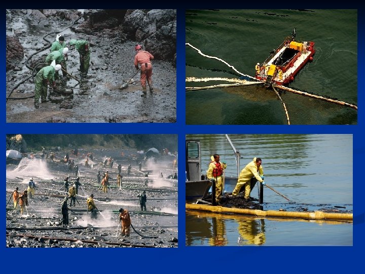 Oil Research shows that most (but not all) forms of marine life recover from exposure to large amounts of crude oil within 3 years: Recovery from exposure to refined oil take >10 yrs n Moderate oil spills can be cleaned up by mechanical, chemical, fire, and natural methods n