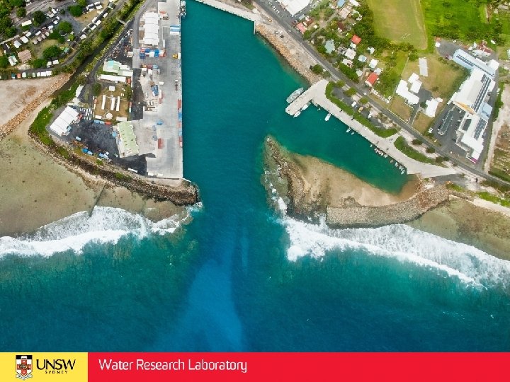 Modelling - Results • Initial desktop predictions using Hudson equation and assuming simplistic depth limited waves suggested: • For smaller wave condition, rocks as small as 0. 5 T should have been adequate • For larger wave condition, rocks of the order of 2 T should have been adequate • Scale physical model tests indicated that for the smaller wave condition: • 2 T armouring suffered minor damage, 6 T armouring insignificant damage • Scale physical model tests indicated that for the larger wave condition: • with narrow reef width, 2 T armouring failed, 6 T armouring adequate but minor damage • With wide reef width both 2 T and 6 T adequate but minor damage • General conclusion is that required rock armour size is under-predicted by Hudson equation and simplistic depth-limited wave height calculation, especially for narrow lagoon widths