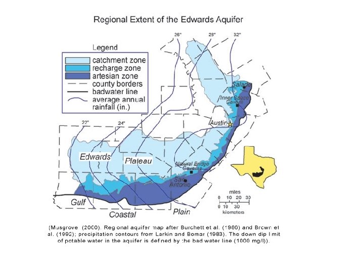 It’s Where We Live • These springs led to the development of major towns along the aquifer: Salado, Georgetown, Austin, San Marcos, New Braunfels, San Antonio, Uvalde, Brackettville, and Del Rio. All of these towns are sited where major springs discharge from the Edwards aquifer. Salado G e o r ge t o wn A us tin S a n Ma r c o s Del R i o B r a c k e t t vi l l e San A ntonio U va l d e N ew B ra u n fel s