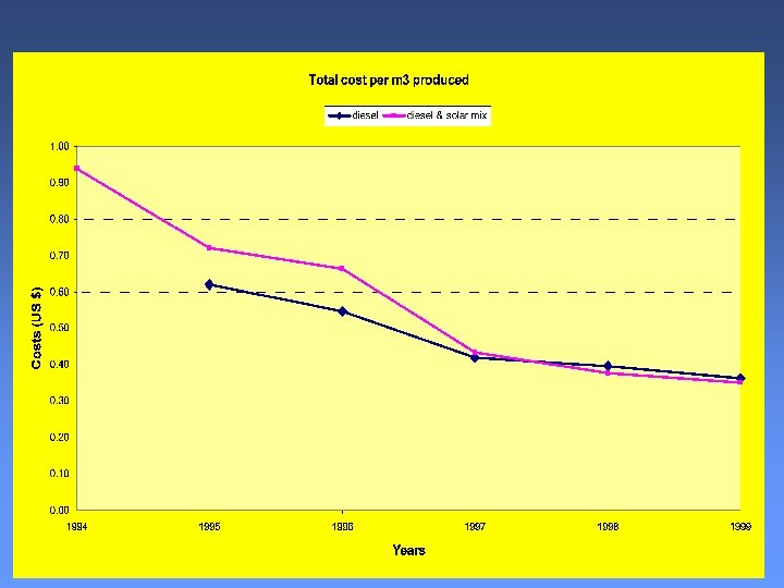 How to account for this l Less wastage of fuel and overpricing Fuel has ceased to go astray ; bills no longer bear an inflated price ; timely preventive maintenance makes the engiens run more smoothly l Optimising use of production capacity: – People consume water more days in the year ; – or more water per day person ; – or people abandon alternative sources and a greater number of people buy water from the piped system