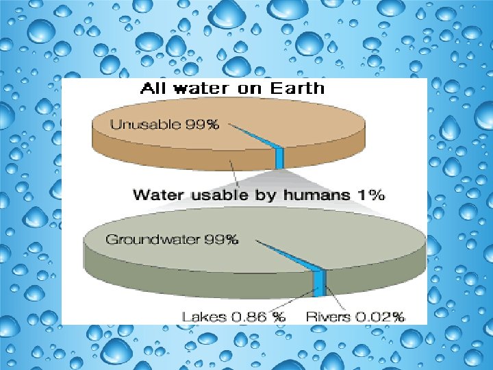How much of the water on the planet is found in oceans • 96. 54 • That means that 3. 46 is freshwater • Of that 3. 46, 69% is frozen Pretend that the jug of water on the counter represents all of earths water on the planet