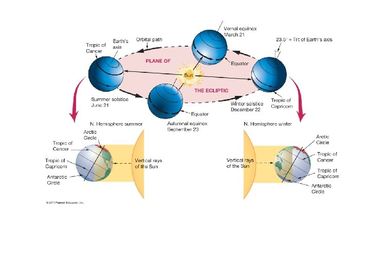 Winds • Cyclonic flow – Counterclockwise around a low in Northern Hemisphere – Clockwise around a low in Southern Hemisphere • Anticyclonic flow – Clockwise around a low in Northern Hemisphere – Counterclockwise around a low in Southern Hemisphere © 2011 Pearson Education, Inc.