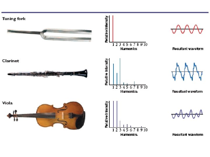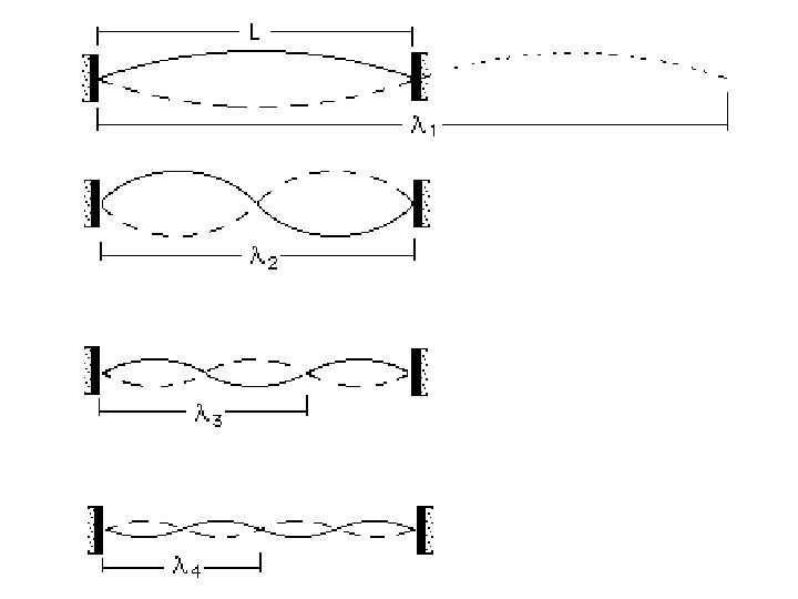 Harmonics • Harmonics are natural frequencies that are multiples of the fundamental frequency – Each harmonic corresponds to a standing wave – Example: vibrating string v fn = n n = 1, 2, 3, … 2 L – Harmonics account for sound quality, or timbre