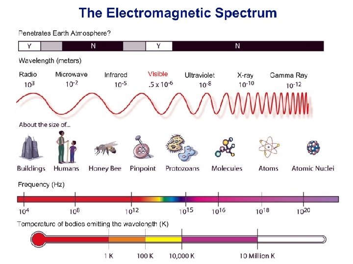 E) Visible Light -Each wavelength corresponds to a specific frequency ** Color determined by frequency 1) People use visible light to see, help keep them safe, and to communicate with one another.